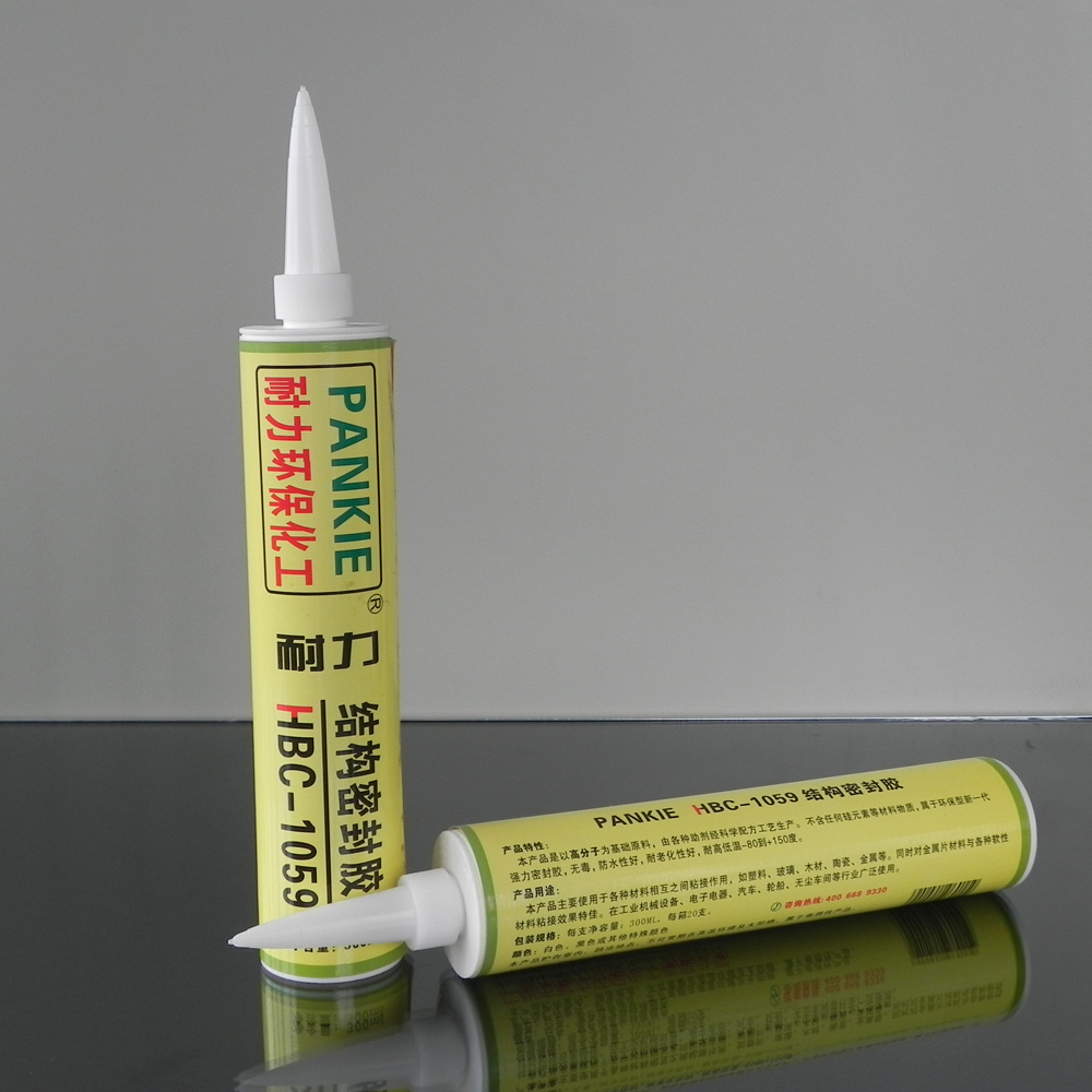 2、結構密封膠 HBC-1059 具有粘接強度高、對基材無腐蝕、通過歐盟ROHS和REACH環保檢測的新一代結構密封膠。